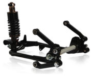 かつて四輪フォーミュラマシンの開発をライフワークとしたエンジニアが、そのノウハウをフィードバックして生み出されたのが、このマルチアームサスペンション。一般的なスイングアーム式はホイールトラベルの軌道がアームピボットを中心とした円周上にあるが、このシステムでピボットを複数に分離することにより、ホイールの動きは非円軌道となる。これにより最適なプログレッシブ効果が得られ、それは限られたホイールトラベルの中で初期作動のスムーズさと高負荷時のトラクション性能を両立させる要点となる。しかし、それを理論どおりに機能させるには3次元のあらゆる方向からくる負荷への対応が必要であった。車体のねじれ剛性の確保には膨大な開発を要したが、PLOT開発陣の技術力と意地を集結し、完成させたType9専用サスペンション。